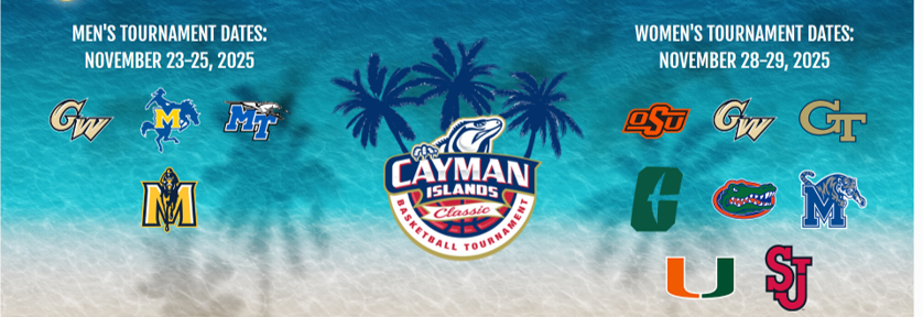 Cayman Islands Classic 2025 Men's Tournament - November 23-25, 2025 McNeese, which advanced to the second round of the 2025 NCAA Tournament, headlines the tournament field for the 2025 Cayman Islands Classic. George Washington, Middle Tennessee, and Murray State also will play in the seventh edition of the tournament hosted by Caymax Sports Ltd. The event will take place Nov. 23-25 at John Gray Gymnasium in George Town, Grand Cayman, just minutes from the world-famous Seven Mile Beach. McNeese will face George Washington in the tournament's opening game at 5 p.m. on Sunday, Nov. 23, followed by Murray State against Middle [...]